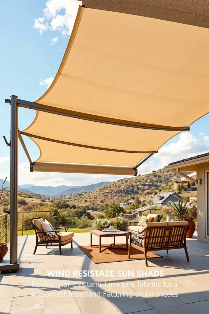 For patios exposed to open landscapes or coastal conditions, I prioritize wind-resistant outdoor sun shades. These solutions are engineered to remain stable without compromising visual appeal, making them essential for open or elevated patio designs.