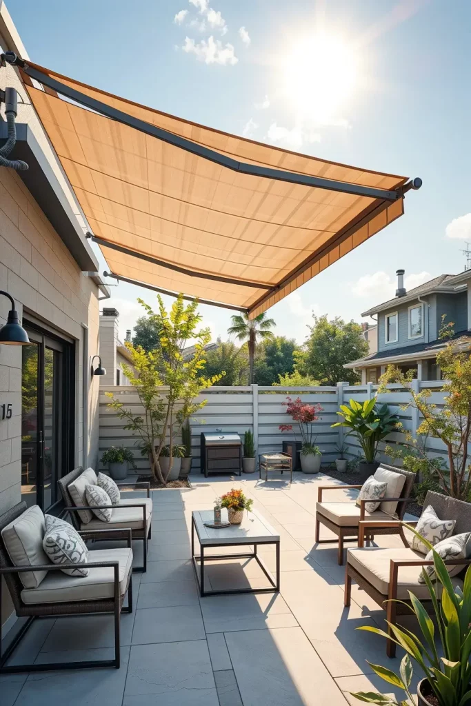 I pair these shades with space-efficient furniture, such as bistro sets, built-in benches, and stackable chairs. Wall-mounted or ceiling-mounted shade systems help free up floor space, while light-colored fabrics reflect heat and brighten the area.