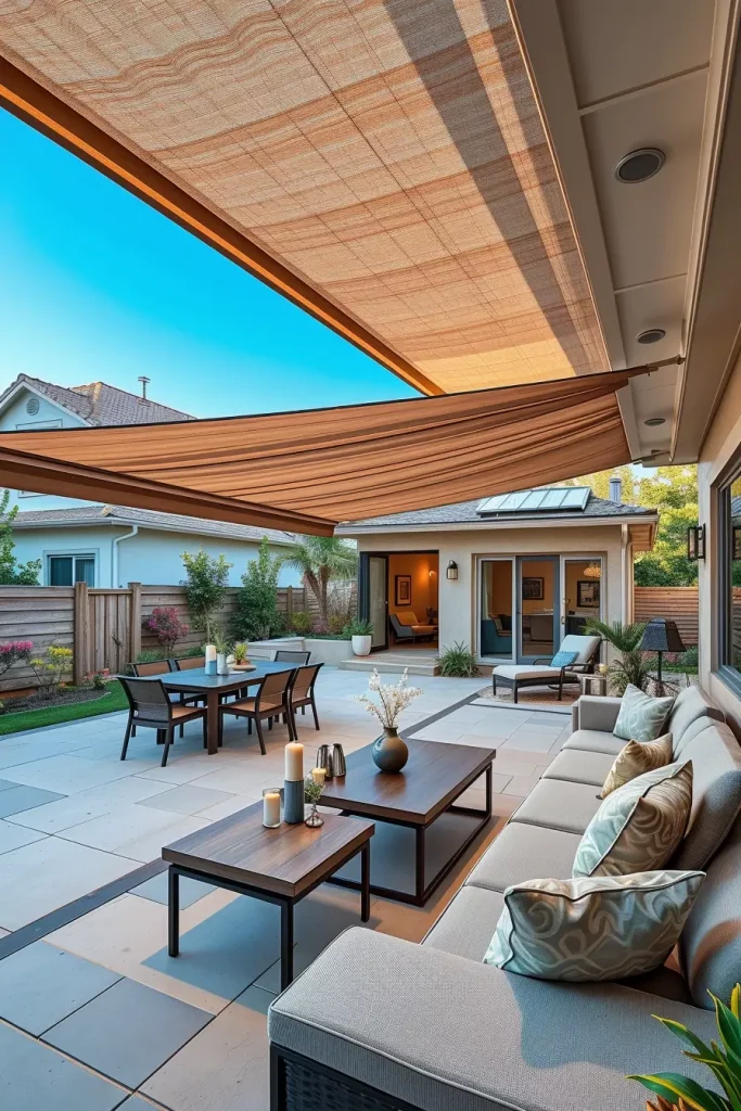 When flexibility is a priority, I rely on retractable patio sun shades to adapt the outdoor environment throughout the day. These systems allow homeowners to control sunlight exposure depending on weather conditions, creating a space that can shift effortlessly from open and airy to shaded and intimate. I find this particularly useful for patios that receive direct sun during peak hours.