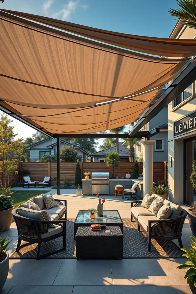 When I work on high-end outdoor projects, luxury sun shades become a defining architectural element rather than a simple accessory. In premium sun shades for patio ideas 2026, I focus on refined materials, seamless integration, and visual harmony with upscale outdoor living spaces. These shades are designed to enhance comfort while reinforcing a sense of exclusivity.
