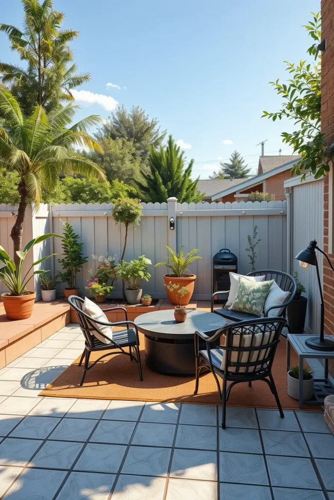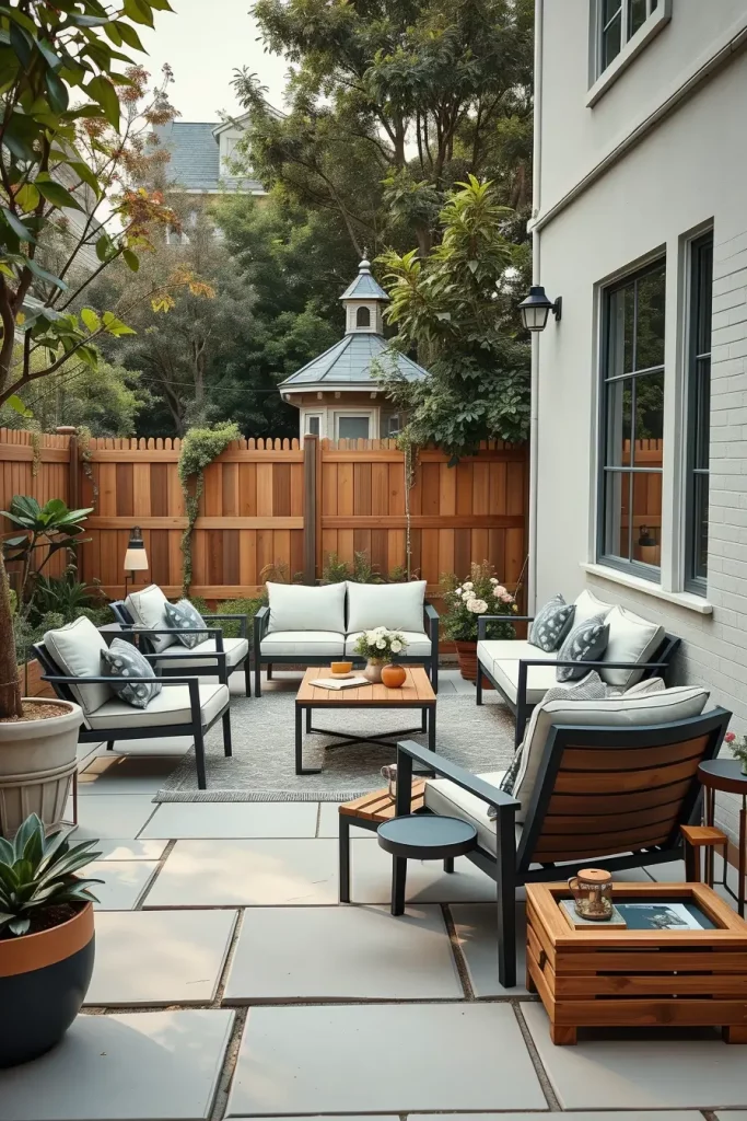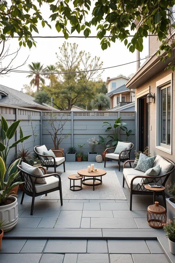 A patio often serves as the heart of a tiny backyard, and in 2026, compact patios are designed to feel intentional and comfortable. I focus on creating a defined outdoor living area that feels like an extension of the home rather than an afterthought.