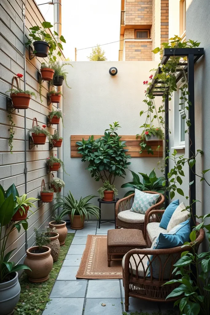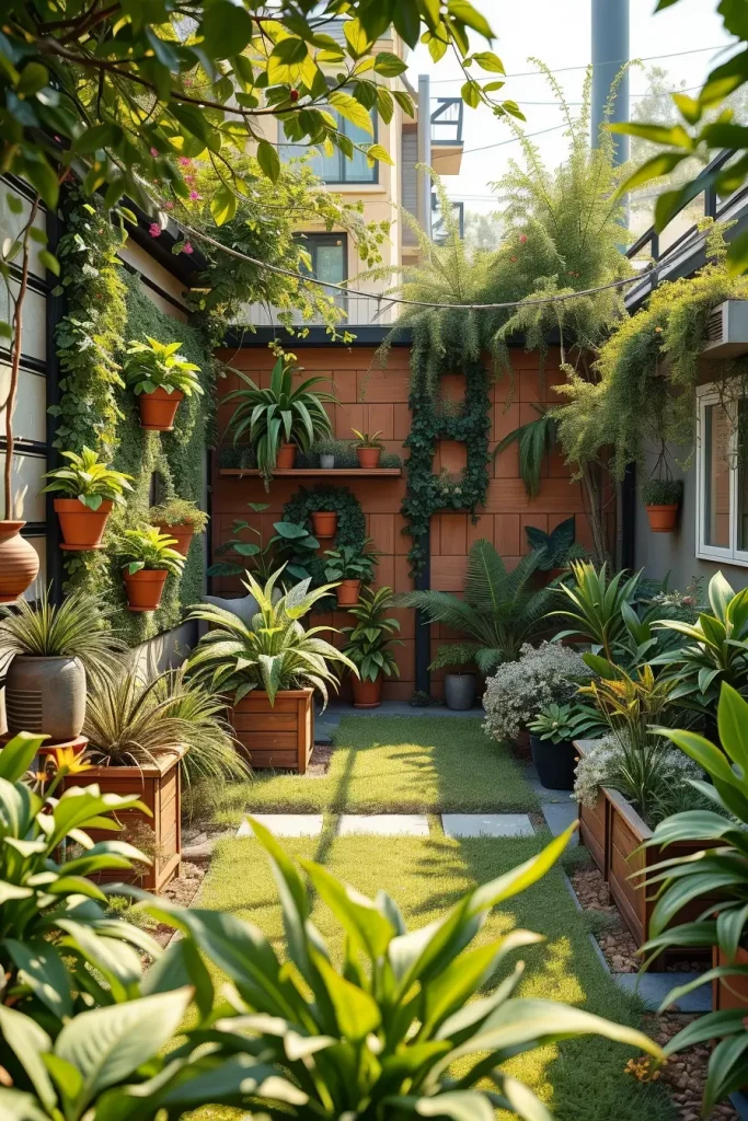 I often include vertical gardens, wall-mounted planters, and compact raised beds. Vertical greenery draws the eye upward, while raised planters define zones without spreading horizontally. Choosing plants with varied leaf textures adds richness without overwhelming the Small backyard.