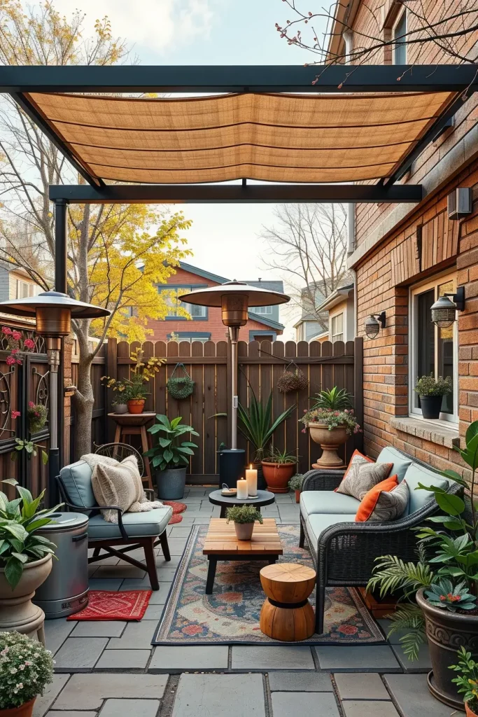 What I would add here is a compact outdoor enclosure system with sliding panels. This allows the small backyard to function as a semi-indoor space during colder or rainy seasons.
