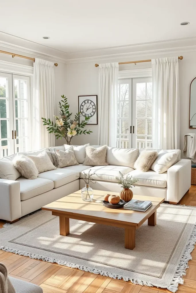 Layered neutrals are my favorite when I am working on a white living room to add dimension and warmth. This implies incorporating the colors of beige, taupe, grey, or cream into the white palette. It is convenient in the sense that it adds more dynamism to the space without losing the white interiors that are characterized by clean elegance.
