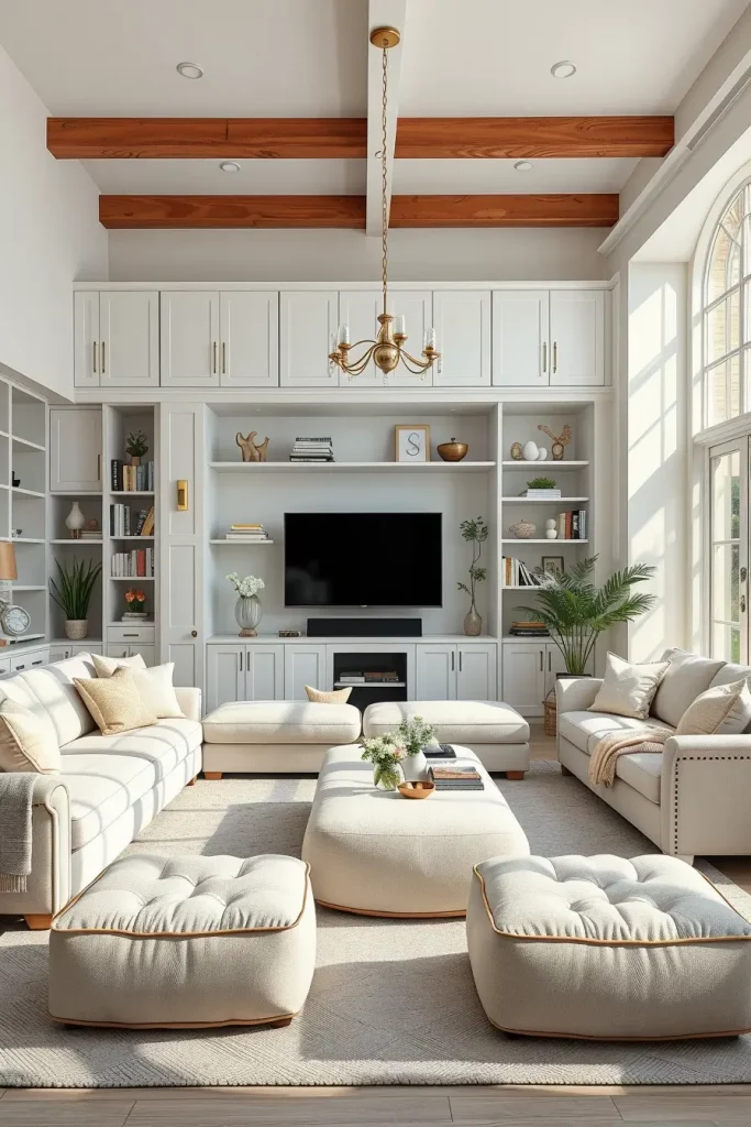 To this part, I would also suggest the inclusion of white poufs or beanbag chairs that are easy to move. They offer additional seating to children and visitors and are easy to clean and move around, making the room flexible to both family and fun.