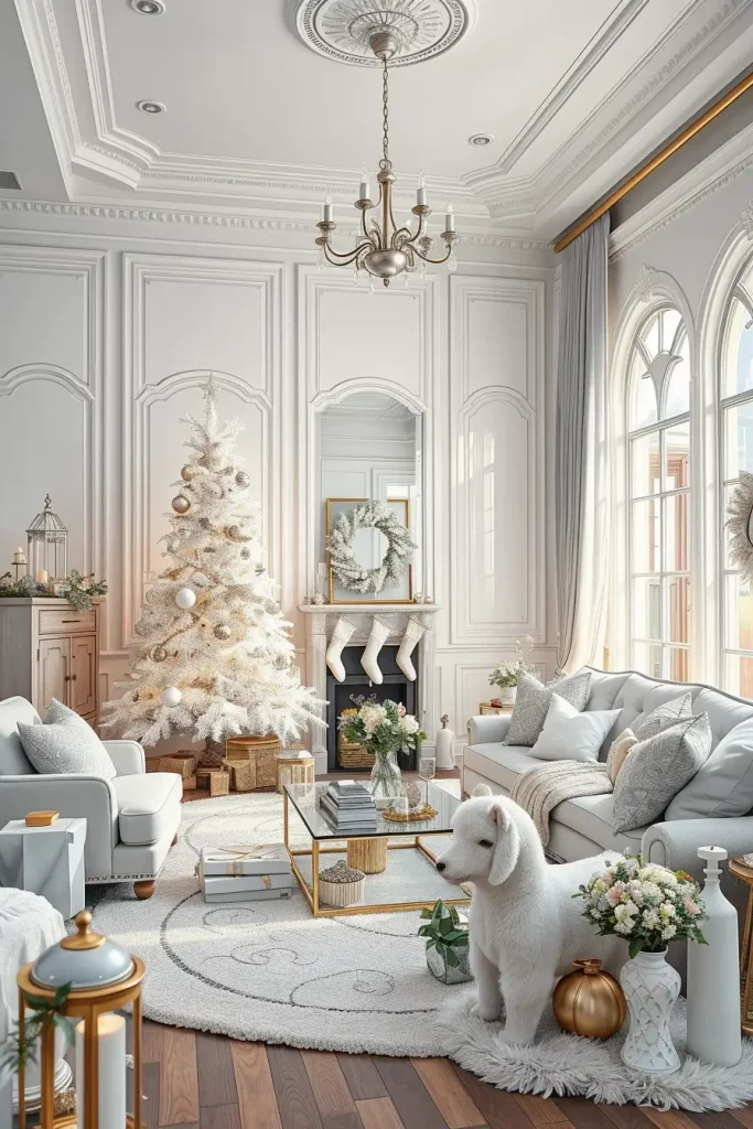 In my case, I normally begin with a white tree at Christmas that has transparent and silver ornaments, faux snow spray and crystal icicles. The space is finished with white faux fur rugs, velvet pillows and sheer curtains. The furniture is light wood or ivory and makes the appearance consistent. The outcome is so soothing, cool, and opulent- the ultimate destination of any person who loves a serene holiday environment.