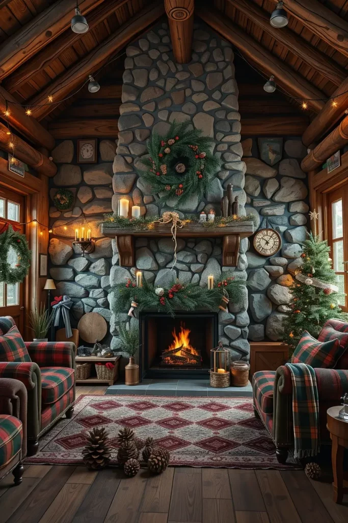 With my rustic styles, I work with plaid fabrics, hand woven baskets and wooden artisanal ornaments. The Christmas tree can be characterized by pinecones, burlap-ribbons, and warm lights. Reclaimed wood furniture also gives it a more realistic feel and an additional homely touch is a stone fireplace or faux log wall. It is the final winter resort type.