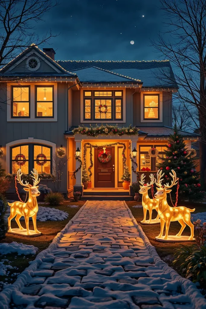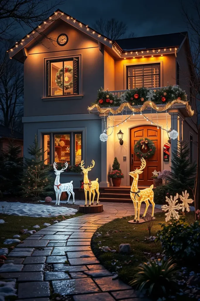 I prefer using the warm LED lights because of their golden appearance and efficiency. The icicle lights, the fairy strands and the light reindeer/star images give depth to the combination. In the routes, there are solar lanterns and glowing snowflakes to add magic touch. Outdoor lighting can also make a common house look like a party when it is properly considered.