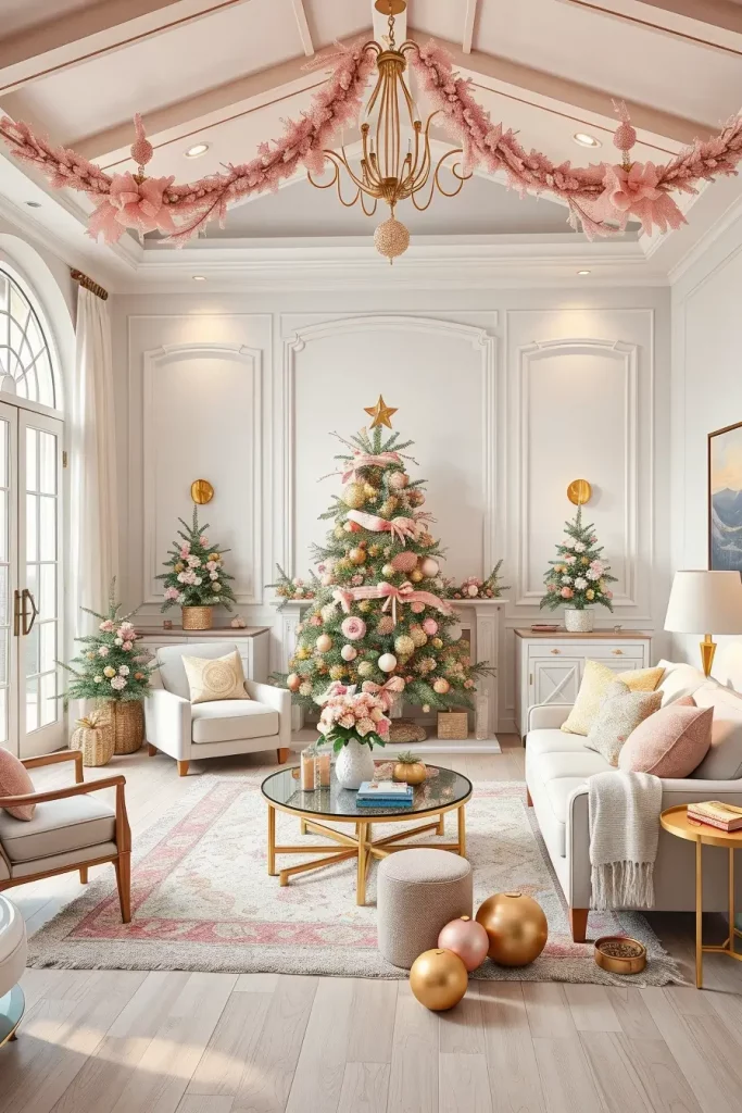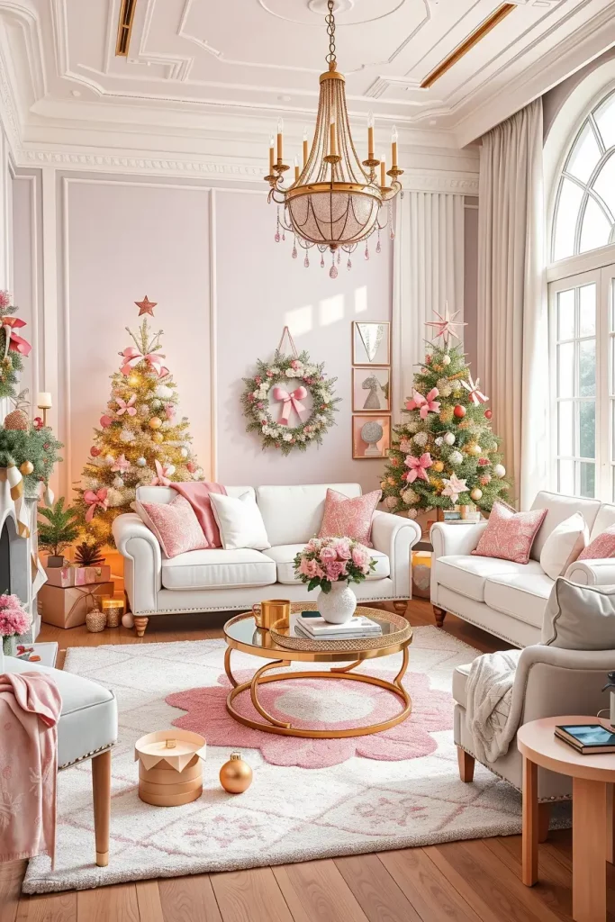 In case of furniture and accessories, I would tend towards white or neutral backdrops – cream couches, plush carpeting and glass tables so that the pink decor is implied gently. Blush, rose gold, and ivory ornaments provide a soft diffused effect that is beautiful when illuminated by warm fairy lights. Even such minor ways as pink ribbons on garlands or pastel stockings can transform your Christmas look.