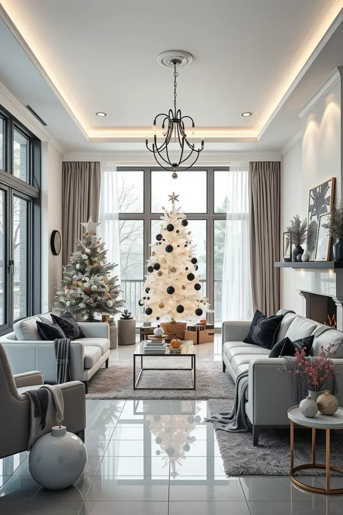 The contemporary Christmas living room will be smooth, practical and stylishly festive in the year 2025. I usually begin with a white or gray wall and simple beige sofas and introduce some small metallic details. Christmas trees with minimalist colors are in this year with any color being monochrome and the focus given to the architectural work and furniture.