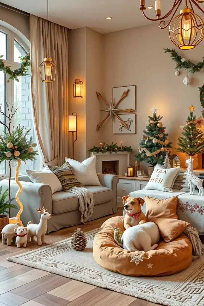 The furnishing of the furniture also counts. I ensure that trees are placed in a stable base and the Christmas lights electrical cords are either covered or higher. Regarding the color scheme, natural colors, such as beige, gold, and forest green, go well with pet-safe fabrics, such as cotton or wool. Festive covered pet beds are also plush, functional and decorative, which is a balancing factor in ensuring comfort and holiday mood.