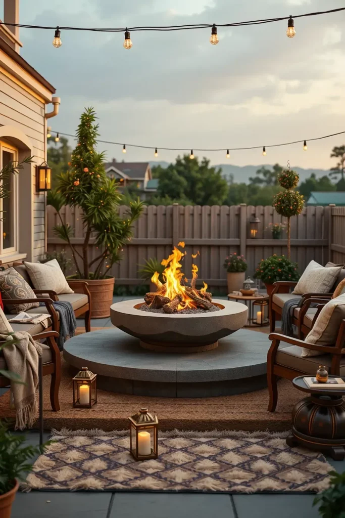 Some of them are a rattan loveseat, an acacia wood coffee table sanded, and mixed-fabric poufs. One thing, I prefer to contrast matte black iron planters with linen-covered furniture to create contrast and harmony. Adding fringe-edged blankets or a wool hammock offers softness and utility, enhancing the patio’s year-round comfort.