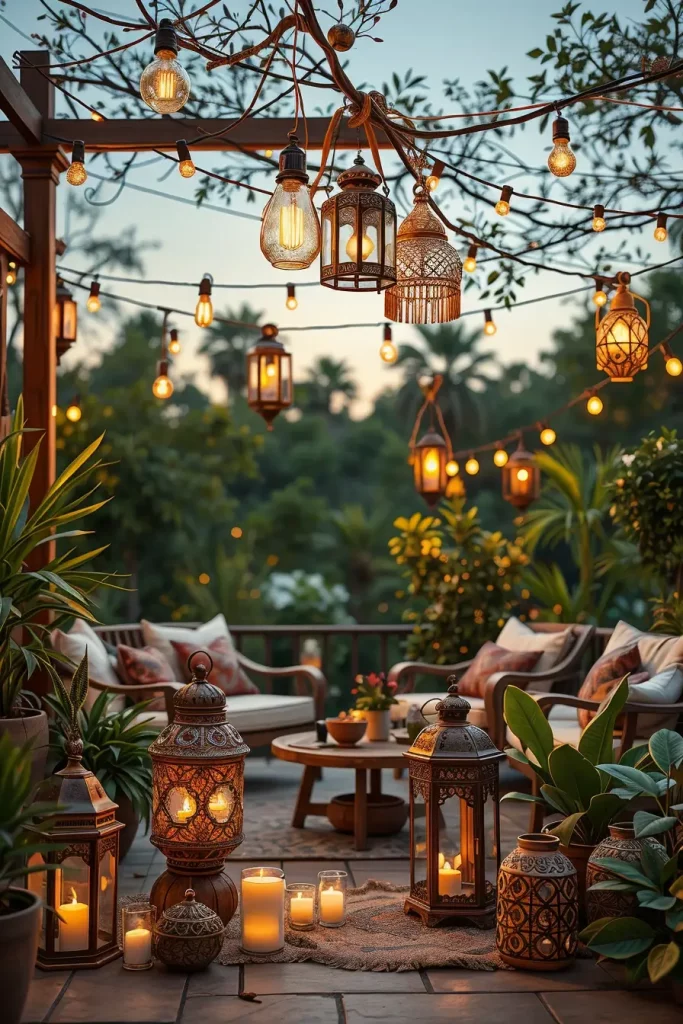 The magical effect of a modern boho-style patio comes in at the part of lighting. I mix hanging lanterns, table top candles and ground lights based on solar so there is layering of the glow. The space is warmer, as the light is soft and it is scattered.