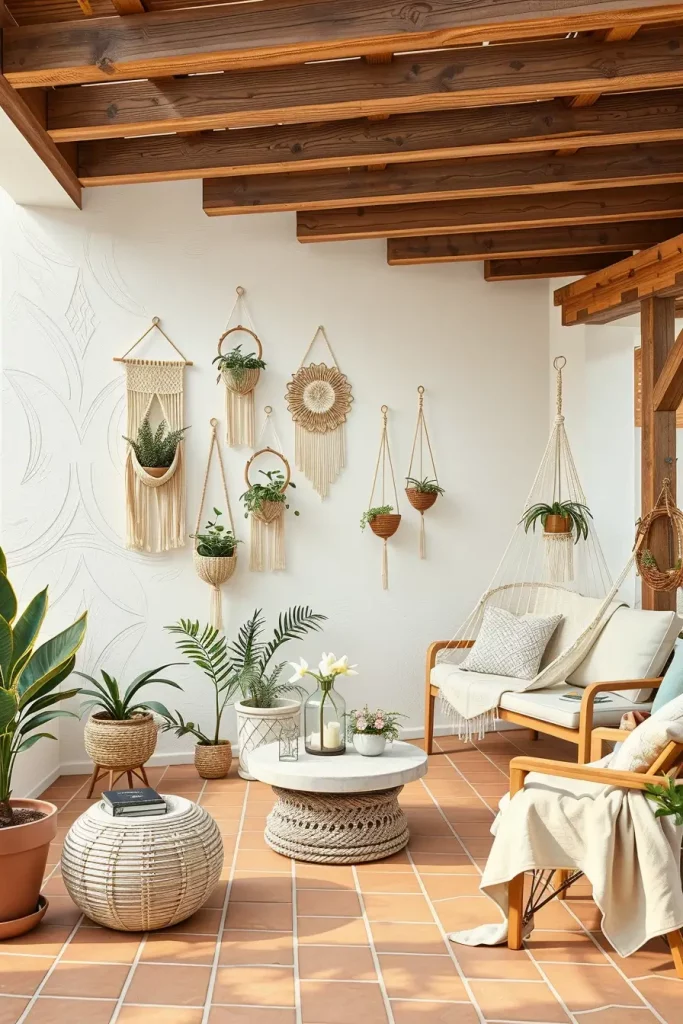 I use macram plant hanger, low-profile hammock, and curtain-like installation in the oatmeal, cream or taupe. These details go together with stone surfaces, terracotta floors, and wooden details. I do not want to be ingested in traditional fringe overload, and so I prefer geometric knotting and to lay out symmetrically.