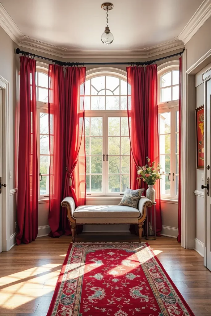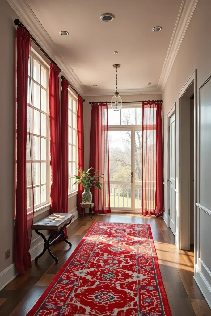 In case your hallway has windows, red curtains can be an excellent idea to frame the light and make the place warmer. I usually prefer to use sheer red materials that will allow natural light to penetrate through the materials casting a soft glow on the walls of the hallways. Not only is the outcome practical but it is also uplifting especially in smaller or darker homes.