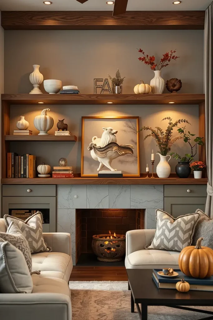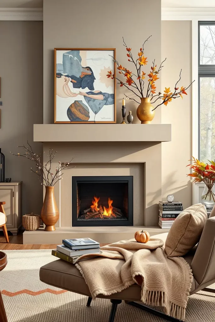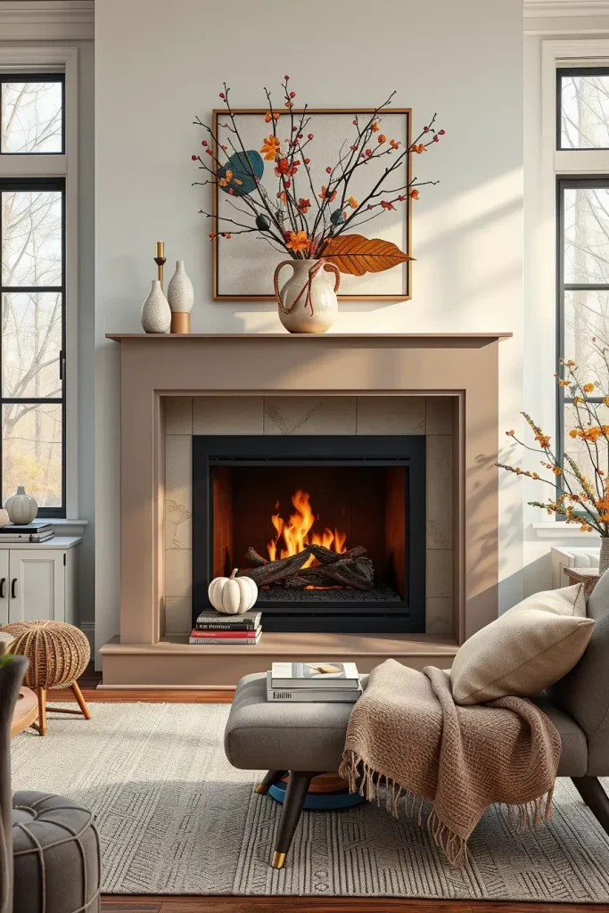Contemporary Fireplace Styling with Subtle Fall Touches