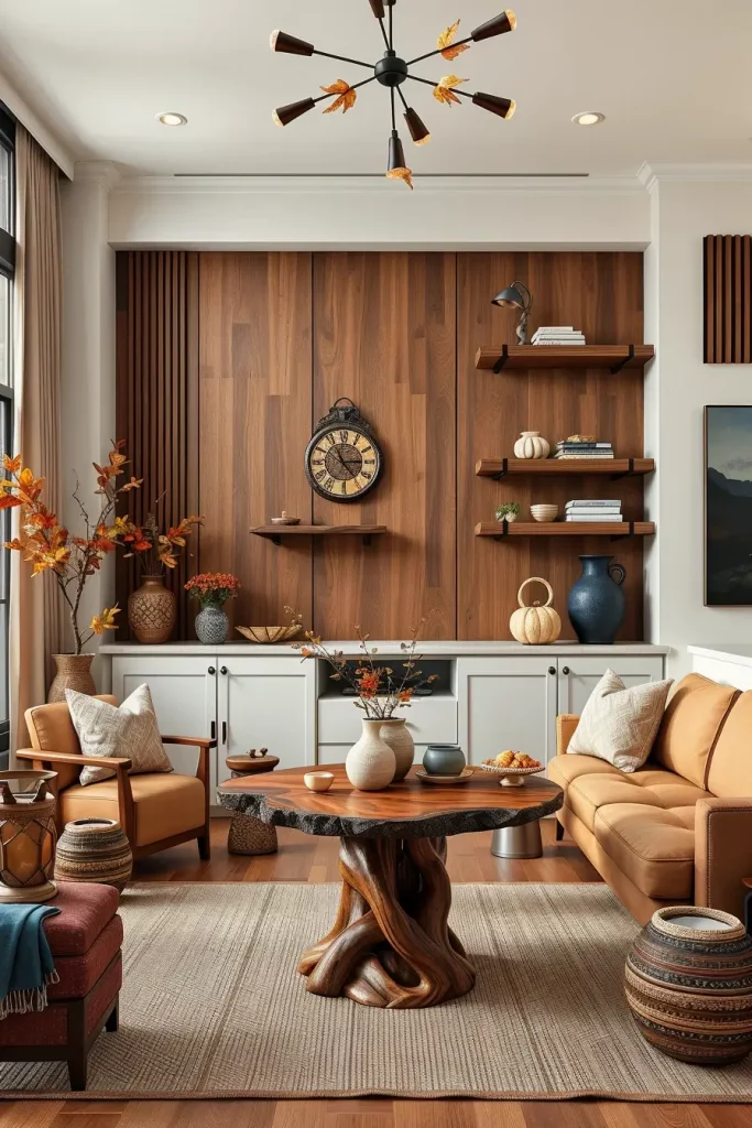 There have been as many times as light woods have ruled the interiors; dark wood will make a tremendous comeback on fall living rooms in 2025. I discover that the furniture made of espresso-stained walnut or oak will bring sophistication and contrast with the warmer colors of autumn. When combined with lighter upholstery, it is breathtaking, a classic-modern combination which is both old & new and appears without a date.
