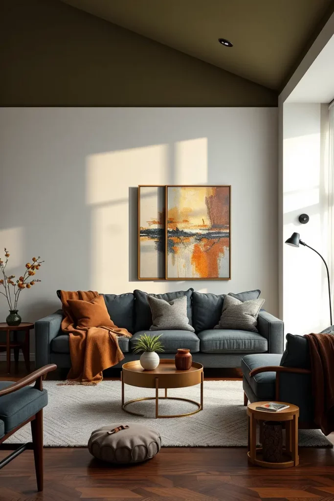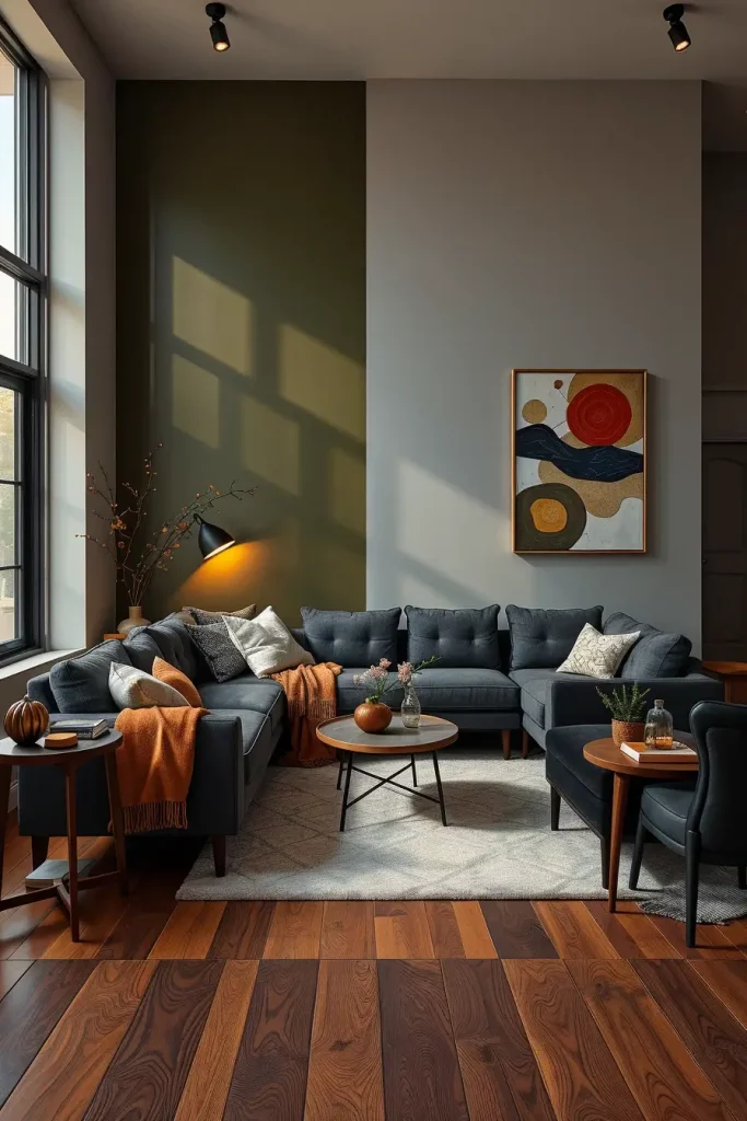 Minimalist living rooms do not have to be sterile, at least, in fall. By 2025, even these austerely minimal rooms are being made seasonal by the introduction of moody color schemes. I use the tones such as deep navy, olive green, sable brown, and burgundy to make slight but successful changes of the atmosphere.