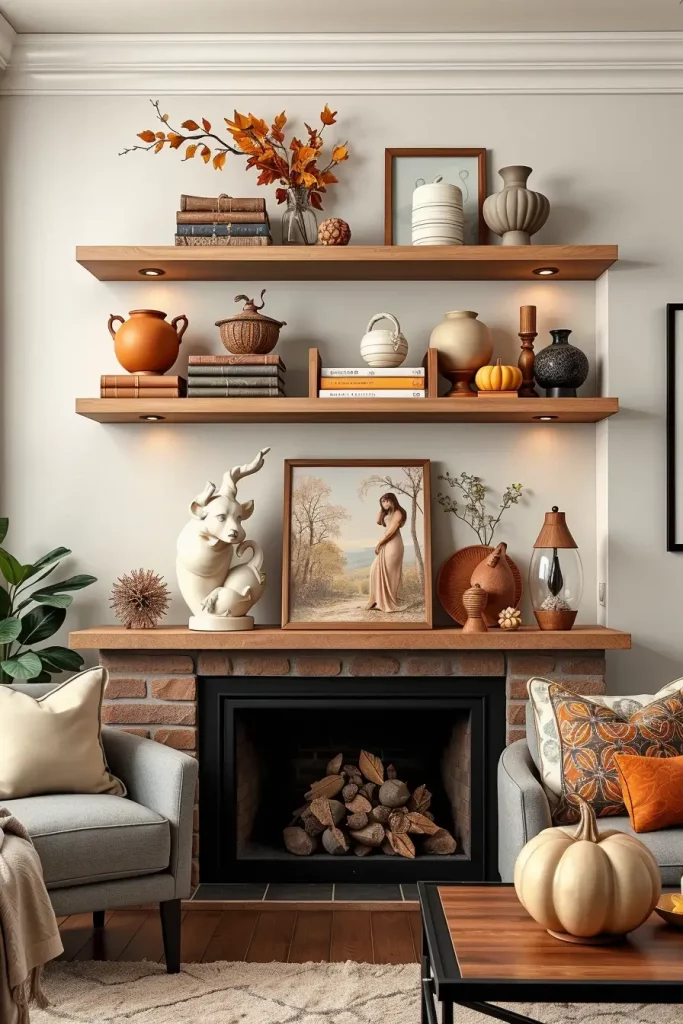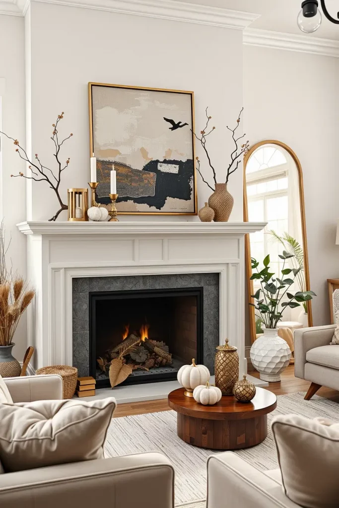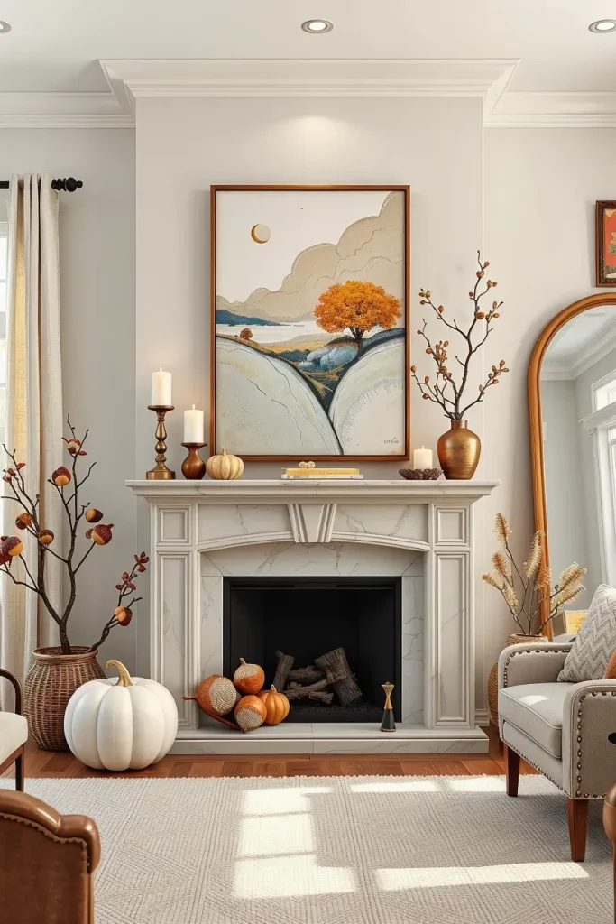 Modern Mantel Styling with Artistic Fall Elements
