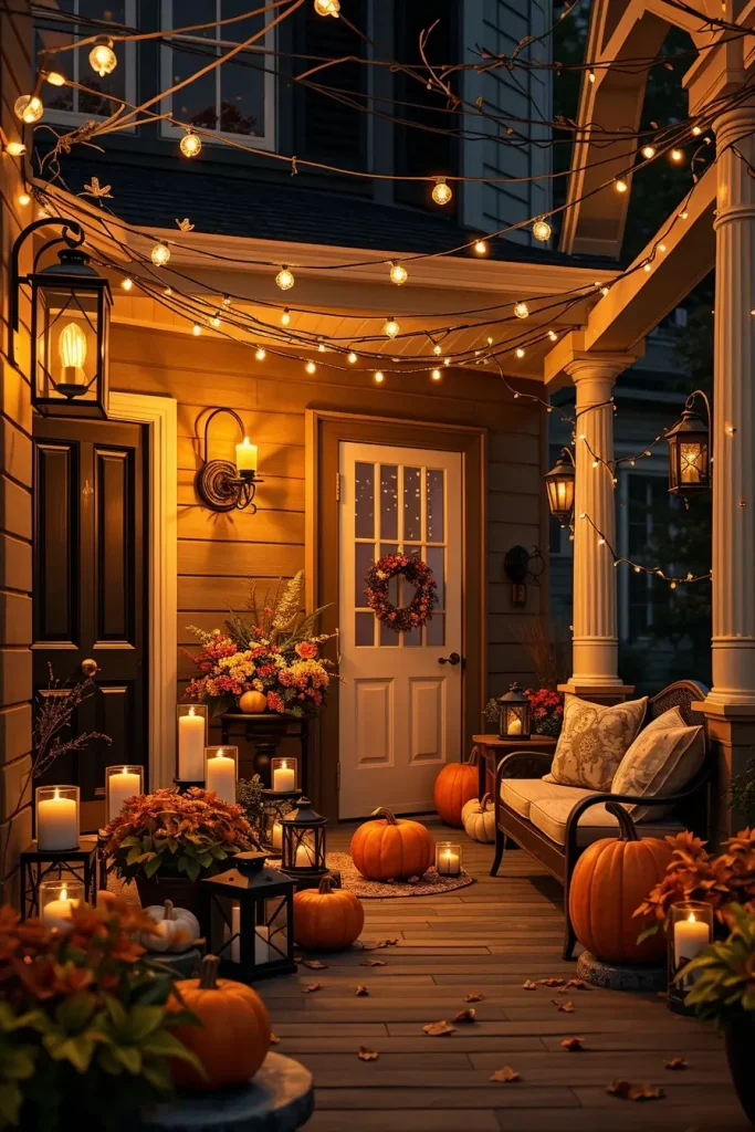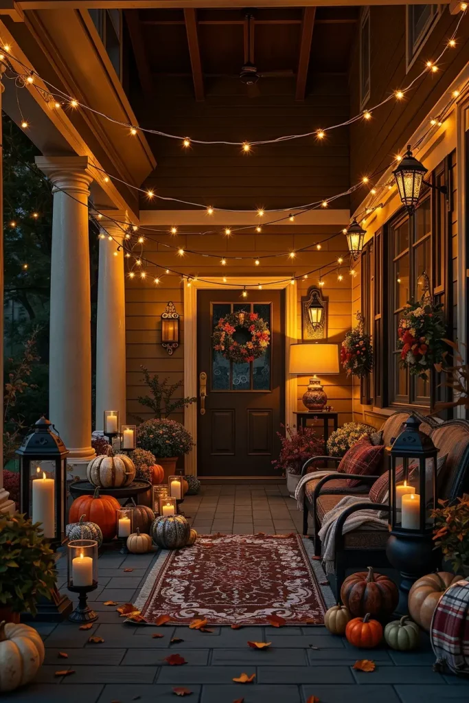 When I was doing this, layered lighting created a sense that a porch was an extension of a home. According to the 2024 fall decor guide by Southern Living, soft lighting invites people to spend more time outside and creates depth even on the tiniest porches. I prefer to combine the levels of lighting and set timers to save energy.