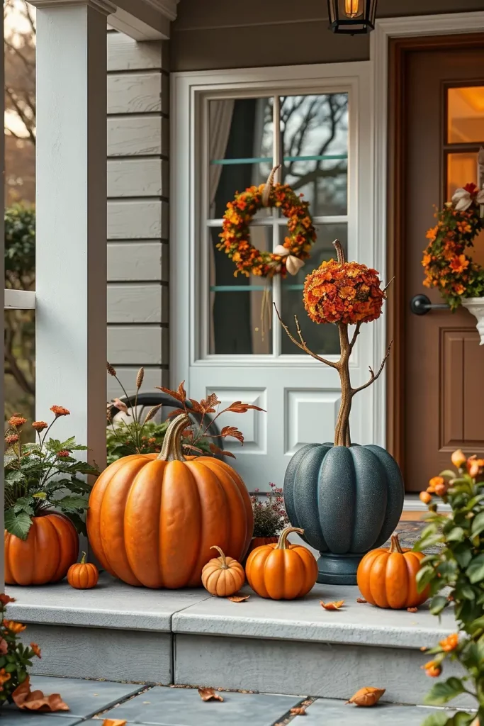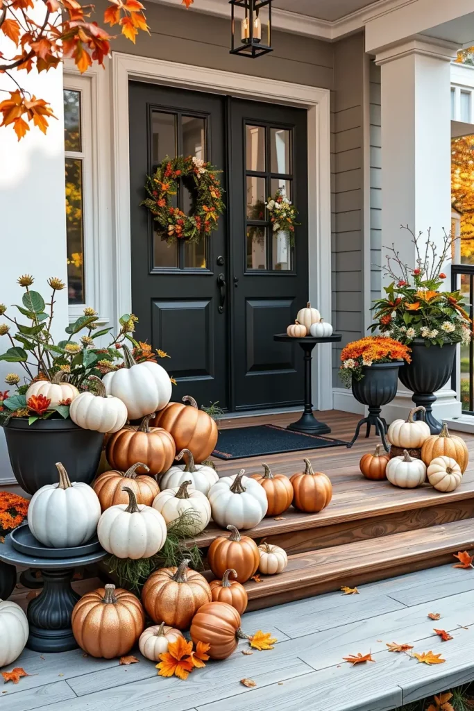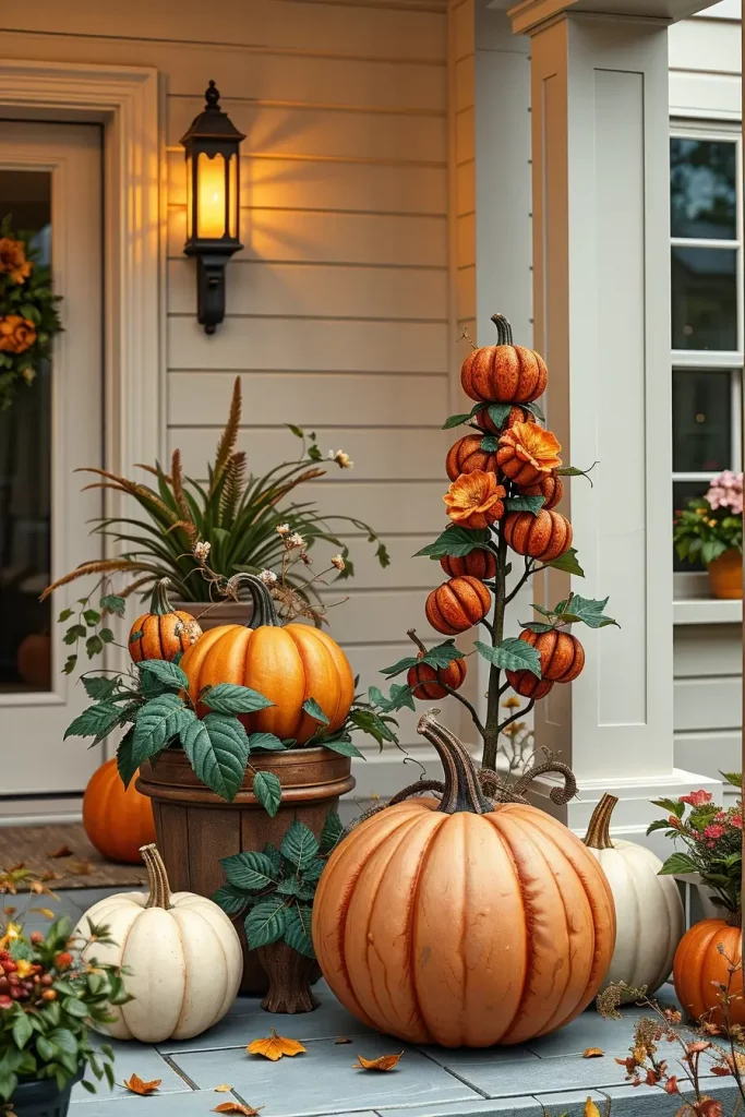 Sculptural Pumpkin Installations For Sophisticated Front Steps