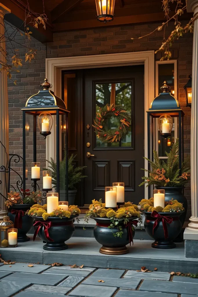 Lighting is everything, and in 2025 I am aiming at the statement porch lanterns that provide soft golden lights. I have large lanterns of brushed brass, matte black or antique copper and I put them on each side of the stairs. I put flameless LED candles inside them on a timer to give the effect of natural flickering light without the risk of fire.