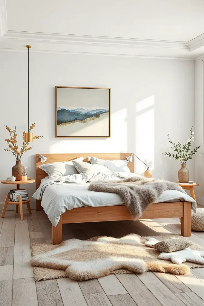 Scandinavian design has always been associated with neutral bedrooms and in 2026 it still influences peaceful interior. I tend to use natural materials such as wood and wool on top of a base of white or pale gray walls. The style is simple but warm, in accordance with the famous Scandinavian concept of hygge.