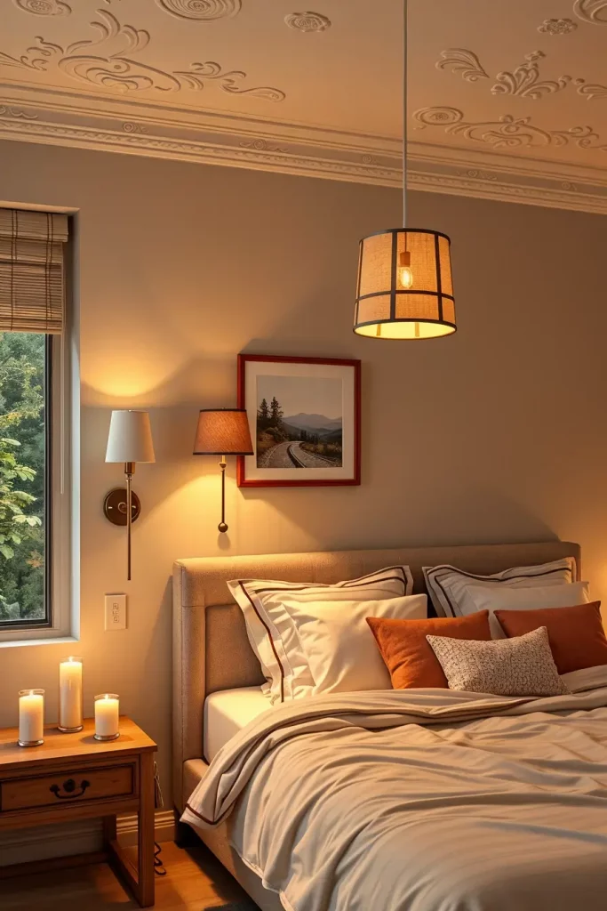 I tend to use warm-colored LED lights with fabric lampshades. Dimmable bedside sconces allow nighttime reading to be enjoyable, and the use of pendant lights that feature soft bulbs provides a classy center of interest. Another layer of coziness can be added by a small floor lamp in the corner.