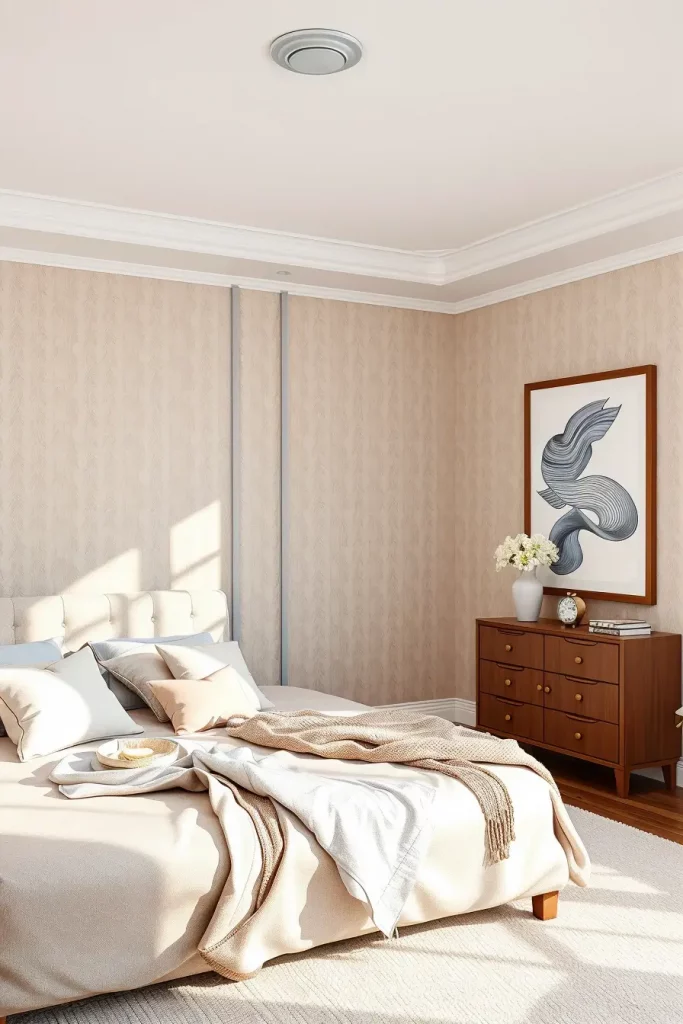 I have observed in my projects that neutral bedrooms can be totally changed by wall treatments. Plain painted walls in beige or ivory are fresh but when texture or design are added, the space becomes more interesting. Wall treatments that are neutral may consist of small patterns on wallpaper, wood paneling, or plaster finishes that are textured to provide depth without changing the palette.
