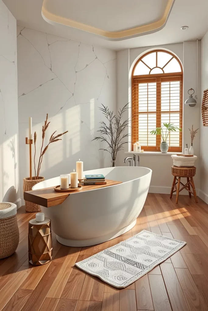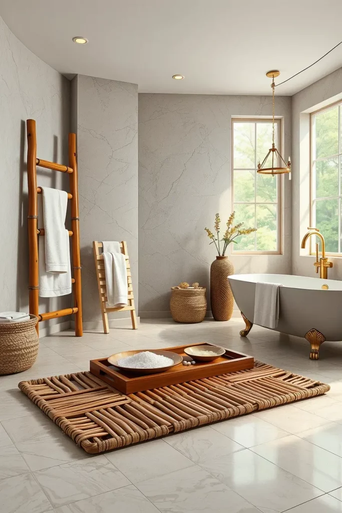 I enjoy the addition in design of a spa-like bathroom with bamboo accessories. Bamboo provides both organic warmth with no overwhelming the cooler color schedule and has a sustainable selection that is lasting and not physically heavy. I would normally employ it on trays, bath mats, ladders, and even drawer organisers.