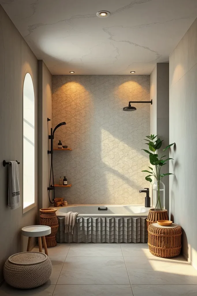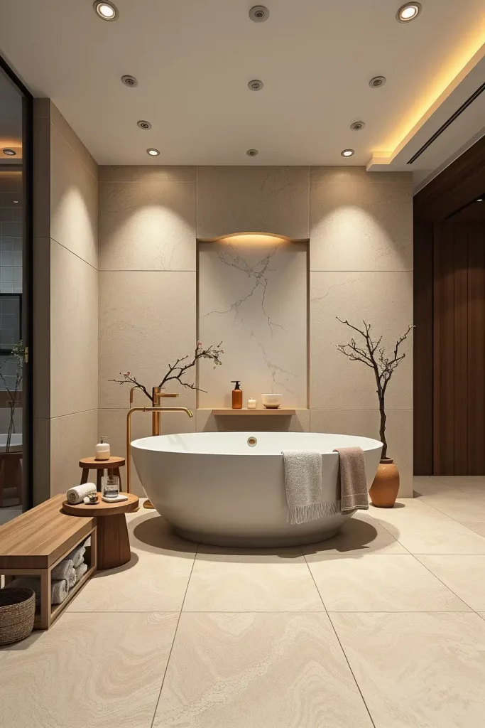 My initial consideration when creating spa like bathroom is to create a calming base by using neutrals. The hues of beige, ivory, grey and creamy whites imitate the peaceful tranquility of nature and promote relaxation of vision. My intention is to prevent adventurous contrasts and act in a bid to smooth out tones so as to enhance a peaceful environment. This approach ensures the space doesn’t compete for attention, allowing your senses to unwind the moment you step in.