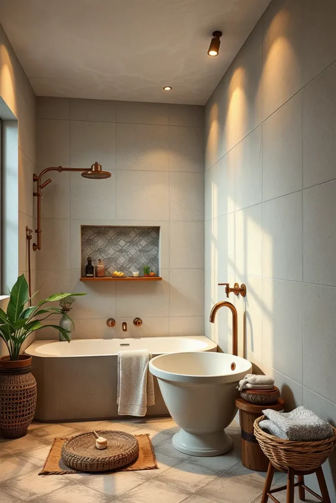 I have vividly experienced the power of touch, natural materials when wishing to coalition to renovate my own bathroom. Elle Decor applies earthy materials such as terracotta or sandstone and states that linkers are developed emotionally with the space, thus proving to be relaxing. The fabrics and colours resemble nature outside like entering a Zen garden or hot spring spa.