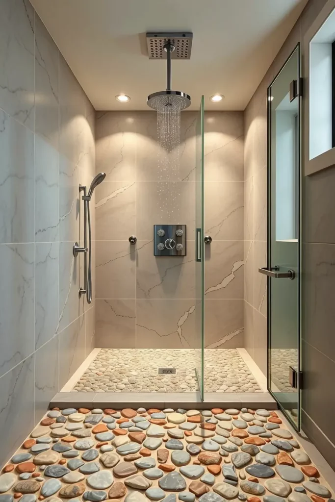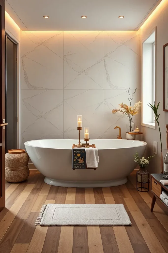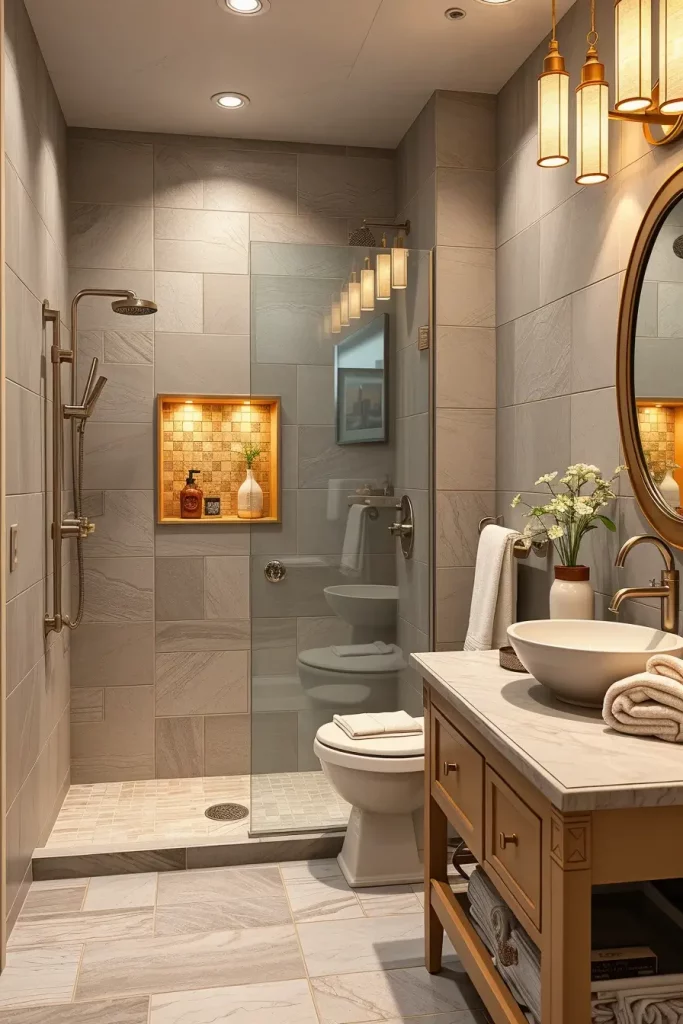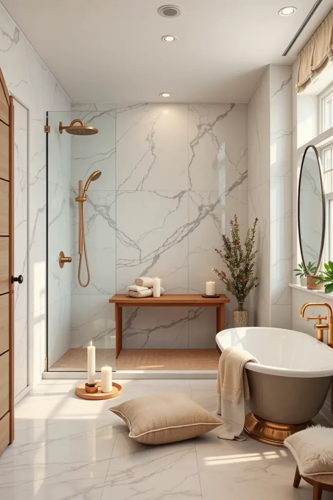 You can add big tiles to the floor and wall to decrease grout lines, that can make the place appear more open and substituting in the same manner. I like the matte finish to look more natural, and if it is a color of travertine, limestone or perhaps even wood-look porcelain tiles. Coupled with soft lights, the textures are quite similar to a luxury getaway in a mountain spa.