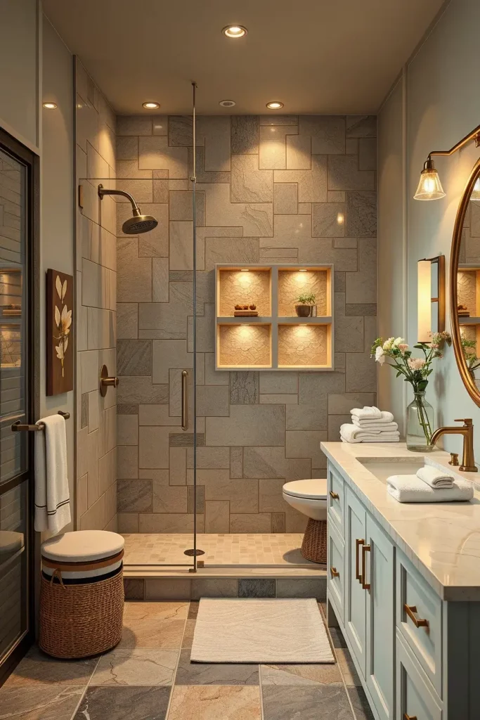 To have a smooth and useful feature, recessed shelving is a modern way of having elegance and I have applied in majority of my spa-like bathroom remodelling. It enables storage to be part of the architecture that is less cluttered and has a clear line of sight. These in-wall niches that can be used in the shower or by the vanity will keep everything one needs at hand without cluttering the space.