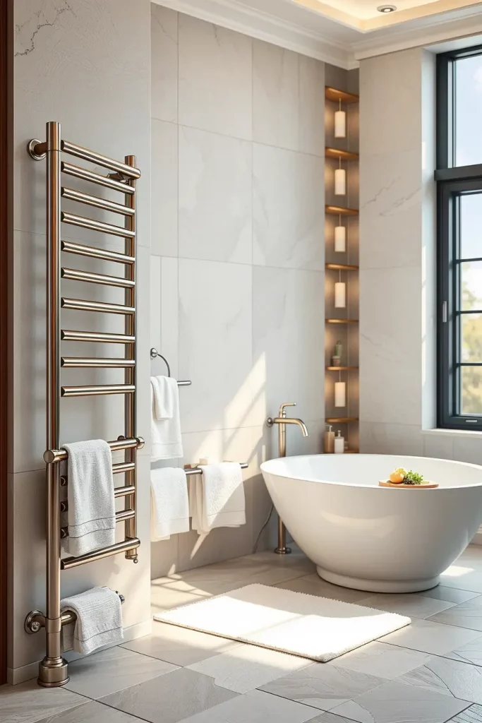 Personally, I have realized that towels slower in a proximity to the tub gives an extra wow factor to majority of clients in my own projects. This aspect contributes to the senses and mixes comfort and practical ways of heating places which designers at Elle Decor speak of in high ranks to create spa-style locations.