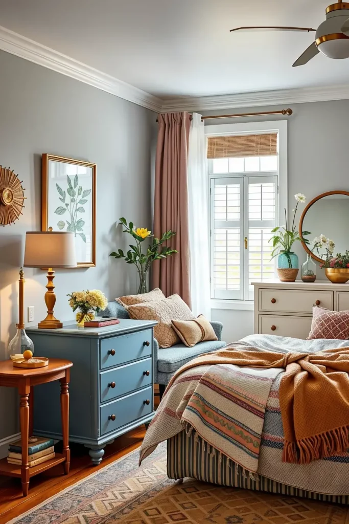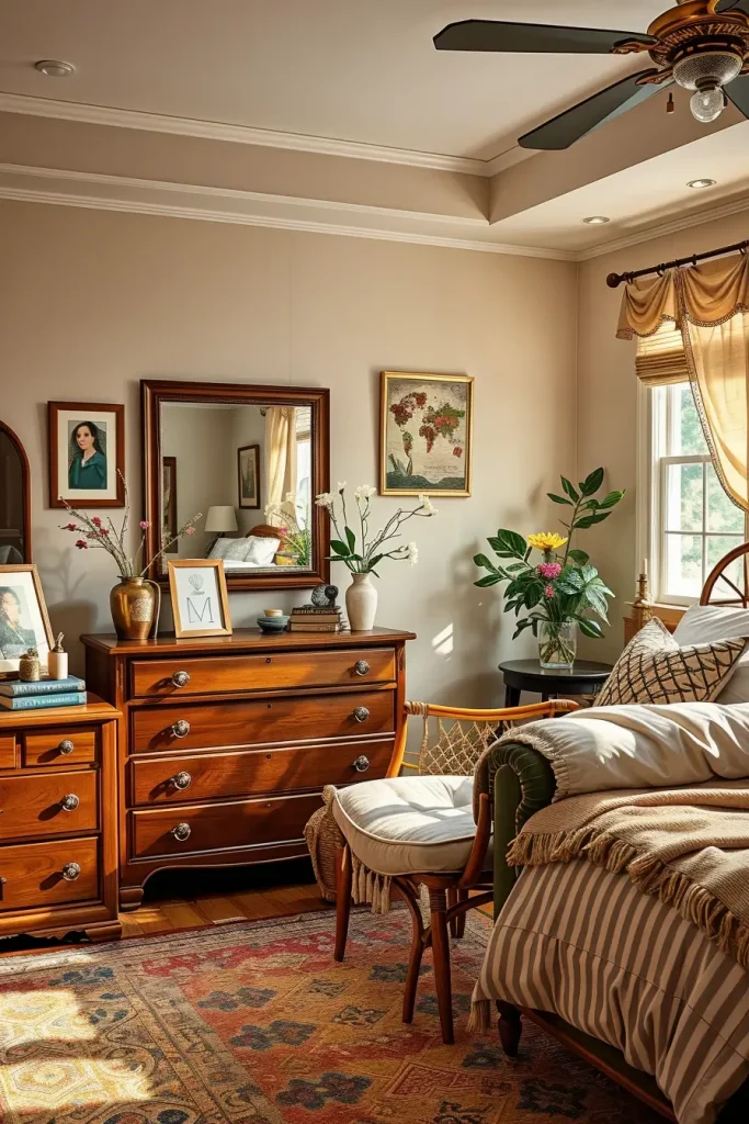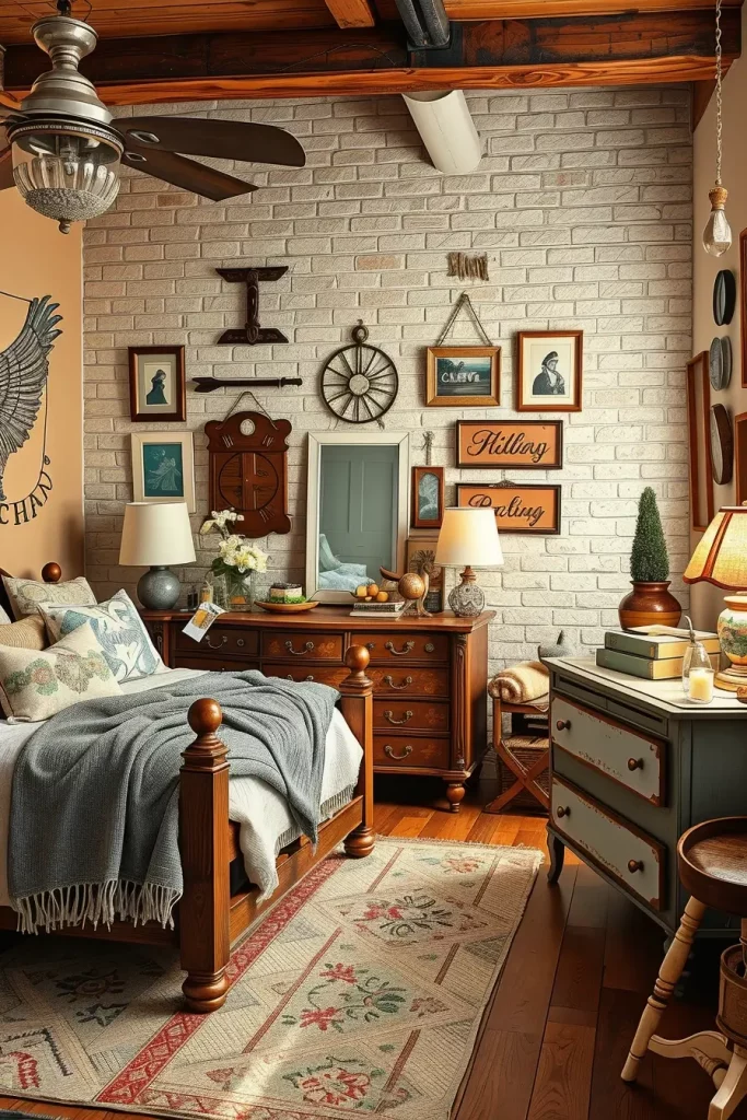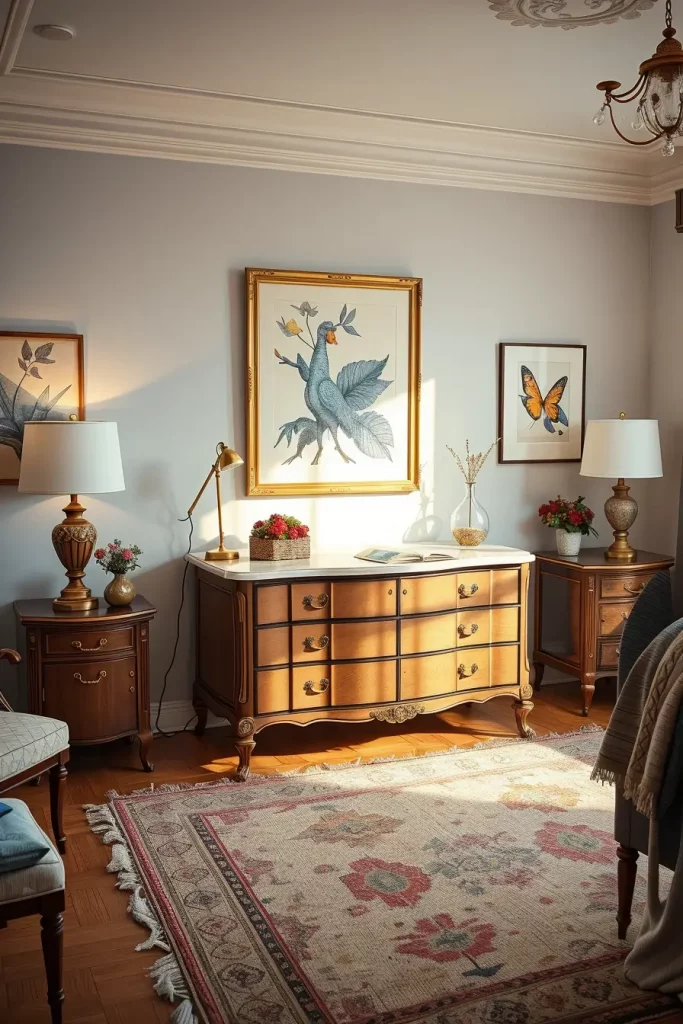 For instance, a thrifted dresser with ornate handles, a vintage lamp with a textured shade, or an antique bed frame can all serve as conversation pieces. These items are not just functional; they bring personality and timeless charm into the design. I often see secondhand mirrors or old frames transform blank walls into striking features.