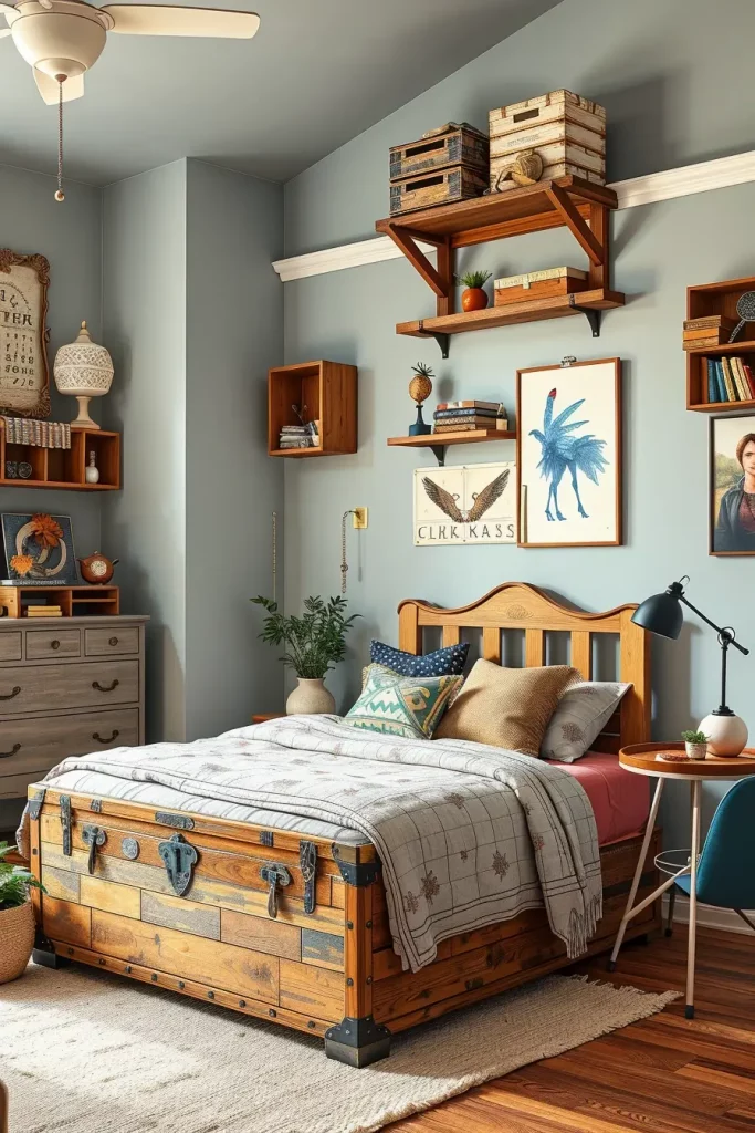One of my favorite things about thrifting is finding items I can repurpose. For example, an old trunk can become a nightstand or storage at the foot of the bed, while a small desk might double as a vanity. Repurposed thrifted items encourage creativity and ensure your room feels original.