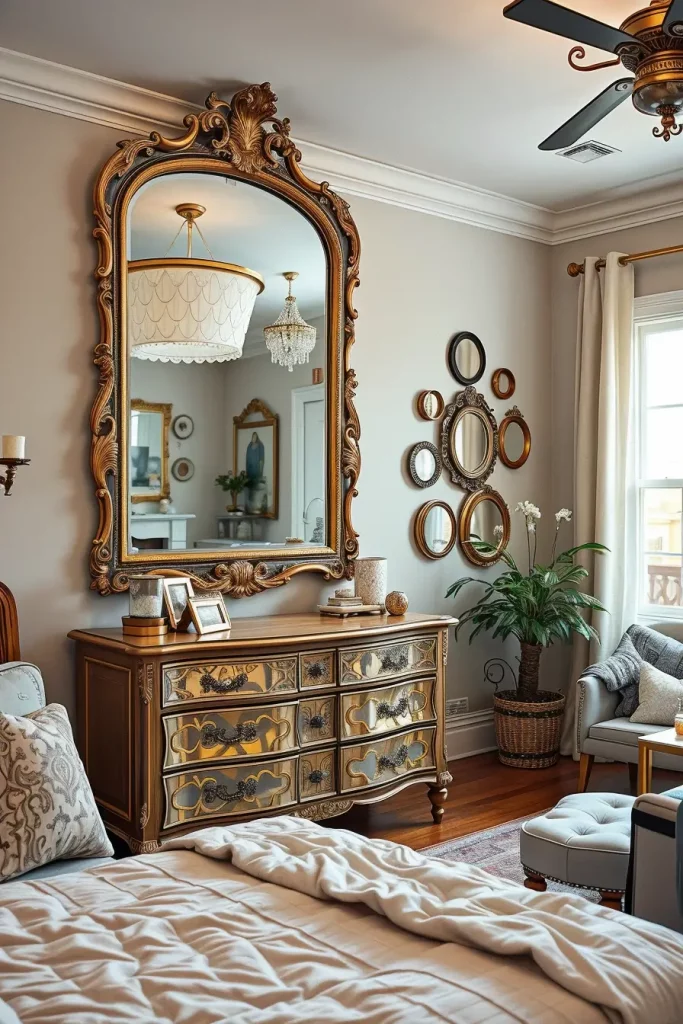 In my own space, I added a vintage mirror above my dresser, and it became a natural focal point. As Better Homes & Gardens suggests, mirrors are a budget-friendly way to maximize light and space in a bedroom.