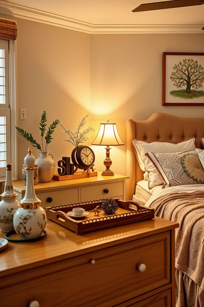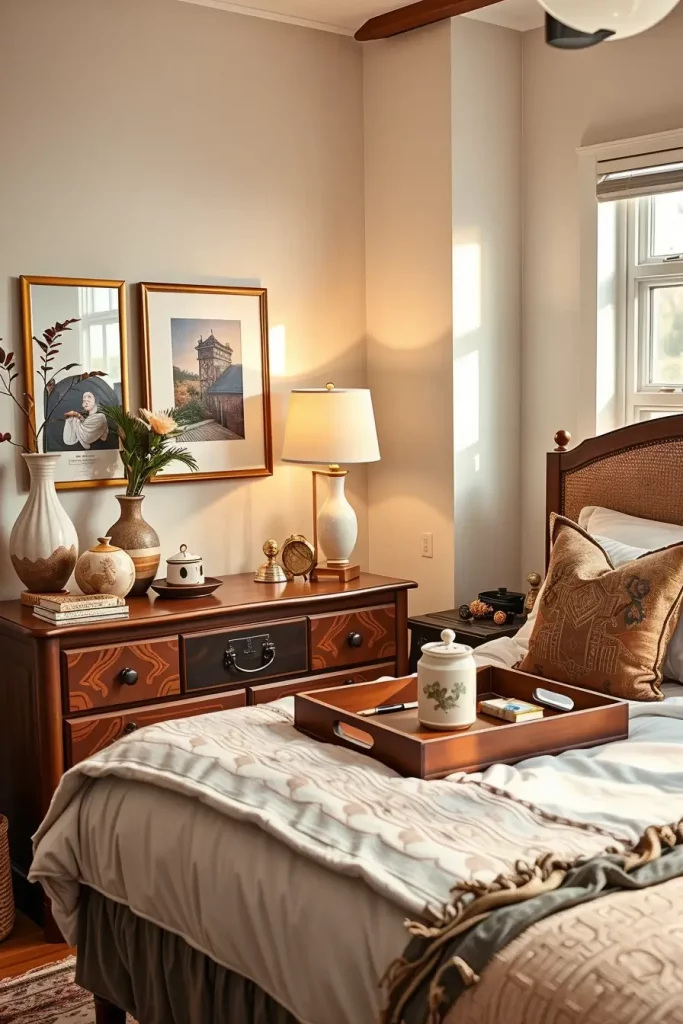 In my own bedroom, an antique dresser has become a centerpiece. I often style it with thrifted lamps, secondhand mirrors, and modern artwork to give it a fresh twist. HGTV frequently points out that antique storage furniture can elevate a bedroom without the high cost of designer pieces.