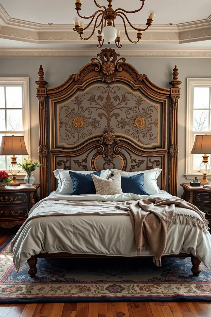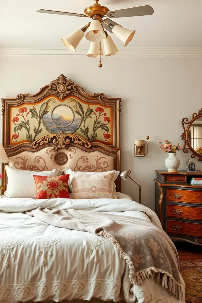 Every bedroom benefits from a strong focal point, and in a thrifted space, a vintage piece can take on that role beautifully. I’ve found that items like a dramatic headboard, ornate mirror, or an antique dresser naturally draw the eye and give the room a sense of purpose. These elements bring history into the bedroom while still fitting into modern design.