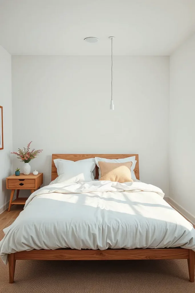 When styling minimalist bedrooms, I keep the color palette clean—whites, grays, and muted tones—so the thrifted accents look intentional. Functional pieces with simple lines, like a low-profile bed frame or a plain wooden bench, work best in this context.