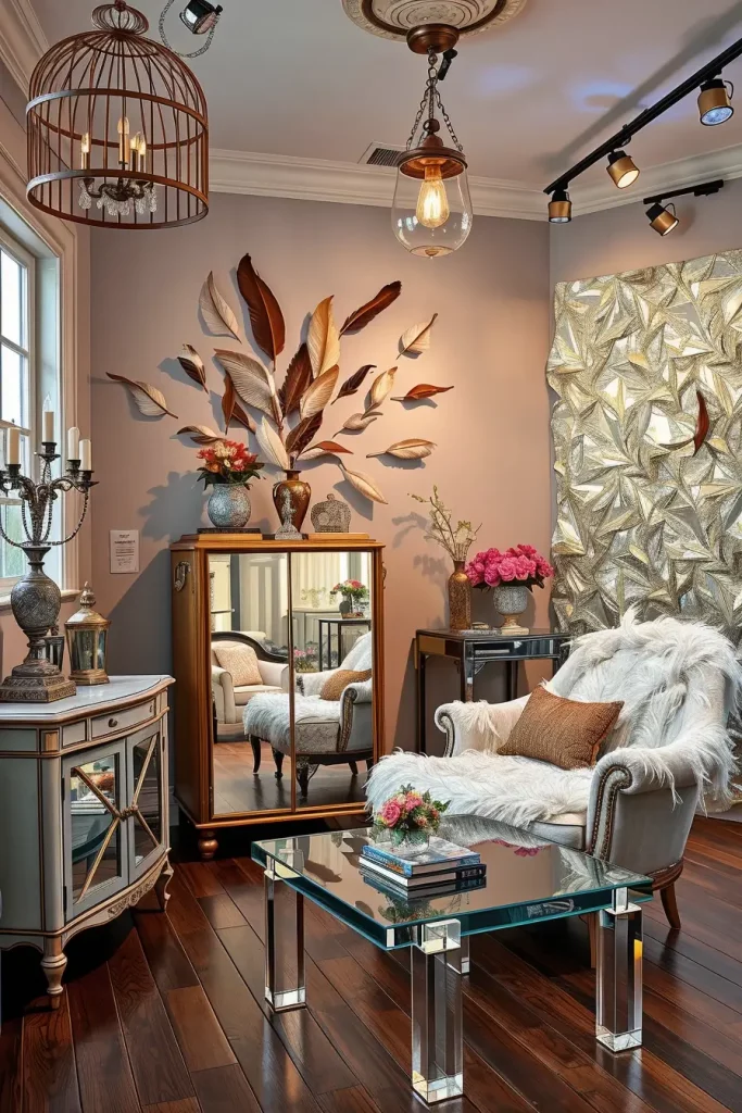 Intentional curation is necessary when decades of decor are being mixed. I pay attention to thematic zoning in order not to make it cluttered. I break up a living room into imaginary chapters, one corner could be mid-century modern, the other 1920s Parisian glamour, and the third one speculative sci-fi. Every zone narrates a story without interfering with the other ones due to the using of identical tones and transition pieces.