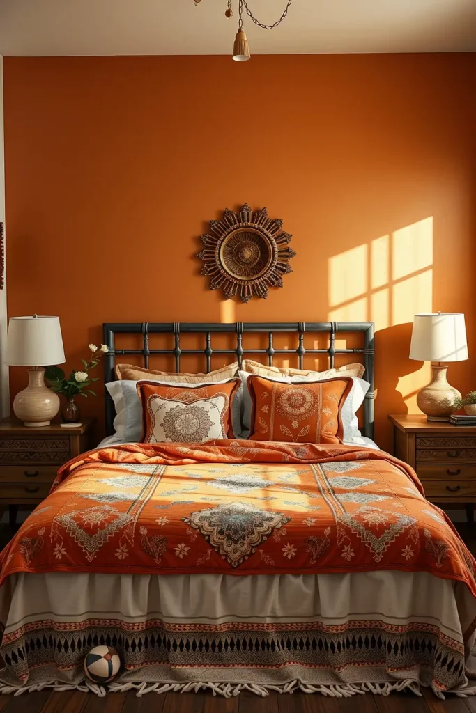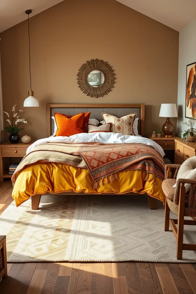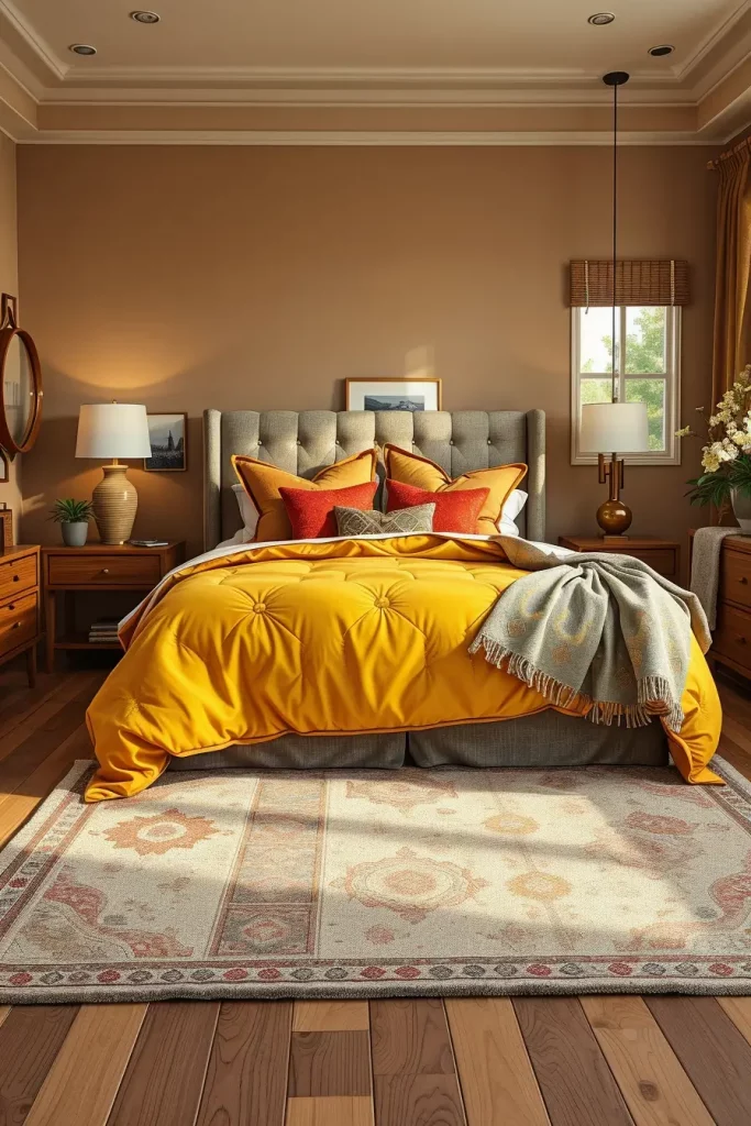 Warm mustard yellow and burnt orange are set to dominate bedroom decor in 2025! These hues work to inject energizing content and seasonal richness without leaning on the traditional reds or browns. The result is warm unmistakably energizing yet still grounded.