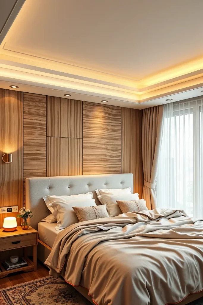 A layered lighting plan is key. I recommend warm backlit panels and smart LED bulbs in pendant fixtures and mounted lamps above the headboards or in the recesses of the ceiling. An adjustable color bedside lamp which is app or voice control is a must have. This blends classic warmth with modern precision control ensuring perfect balance is always attainable.