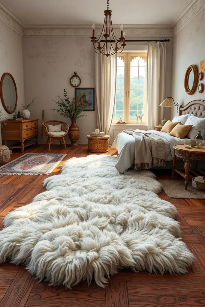 Faux fur leads to a touch of extravagance. However, it remains unshowy. As noticed by Elle Decor, plush textures are pivotal for the “comfort-first” focus for 2025, particularly for bedrooms. I firmly agree. It is practical to use while luxurious to touch.