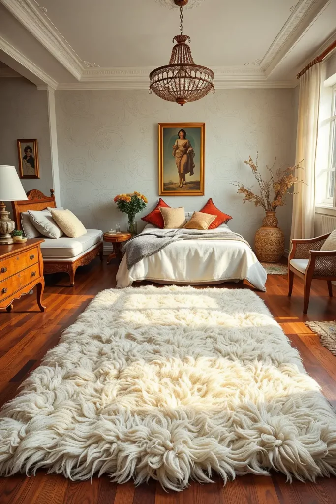 Warmth in a bedroom should include a soft tactile layer, for me this is rugs. The feeling of a soft, plush surface as you step out of bed is delightful. For 2025, the cozy flooring trends will include chunky textures, layered rugs, and natural materials like wool, jute, or shag.