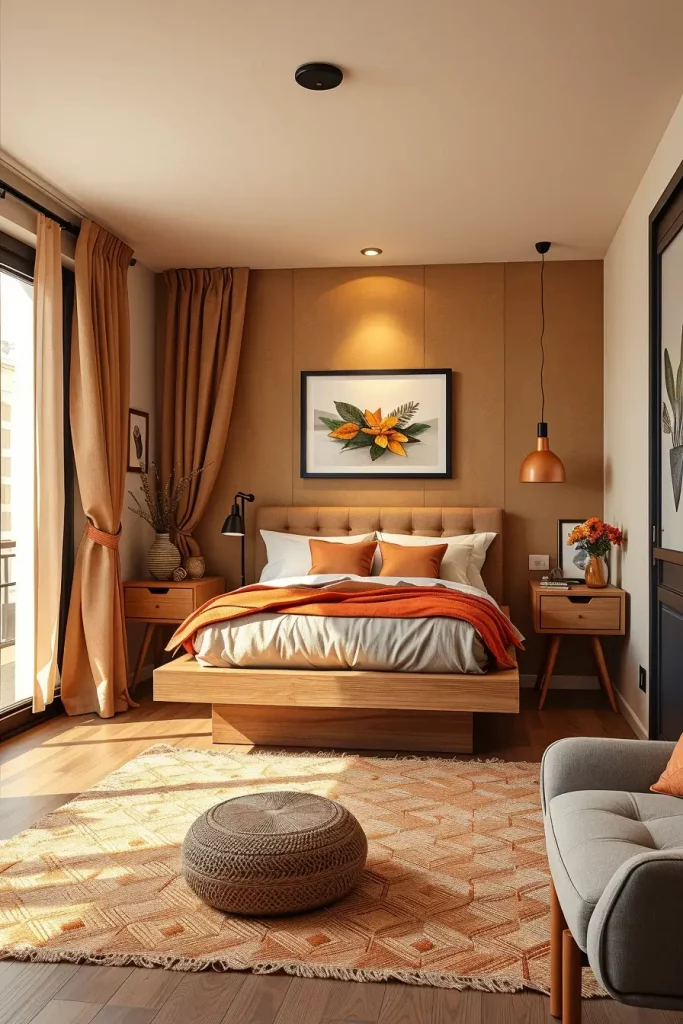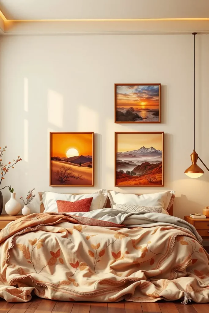 Wall art is a major contributing factor in determining how a warm bedroom feels. For 2025, warm abstract and landscape photography is in, which also embodies the move away from monochrome minimalism. Earthy toned textiles and warm abstract prints will add more charm to any space. Art complements a space and, at the same time, invokes desired moods.