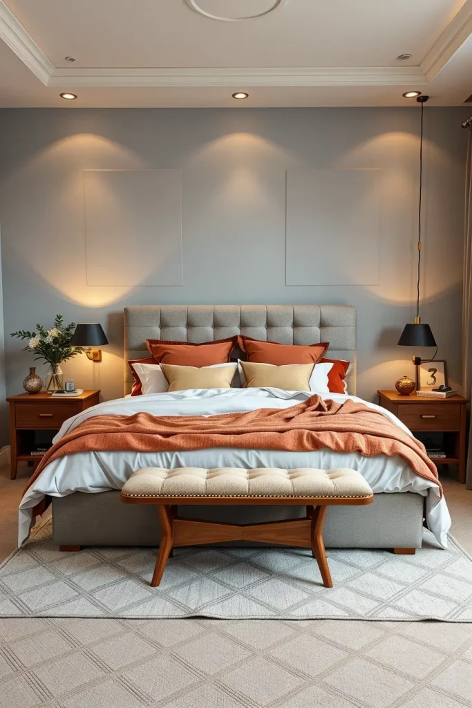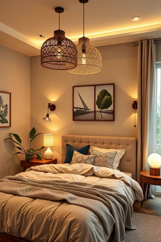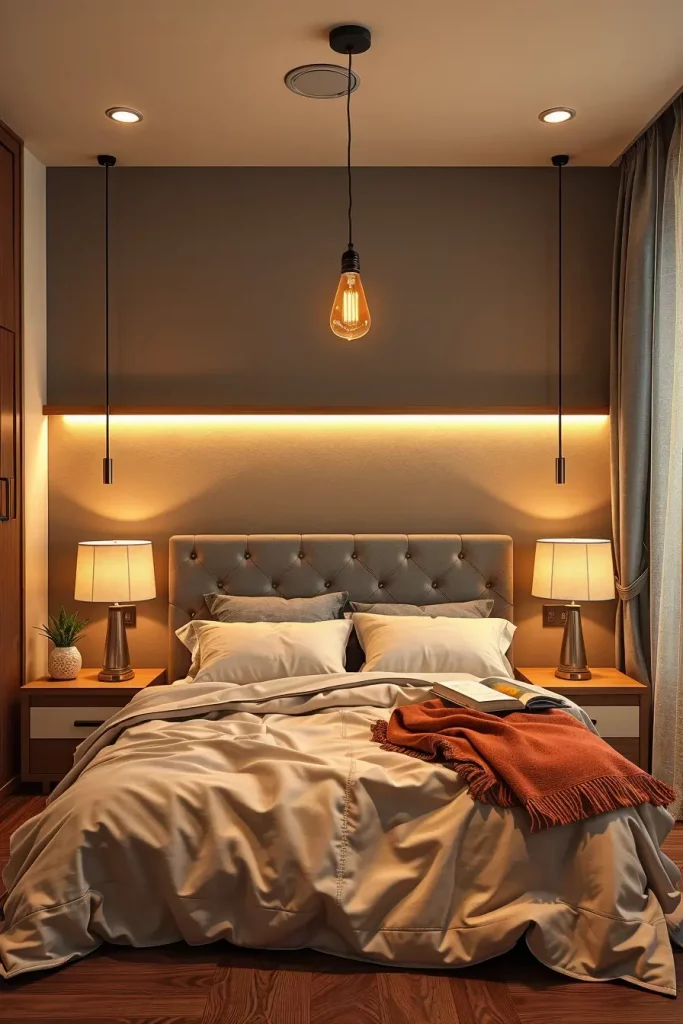 Warming the bedroom is impossible without planning the use of ambient lighting. The use of harsh overhead lighting breaks the coziness I work so hard to curate. I always add layers of more gentle light, like wall sconces, warm LED strips, and dimmable lamps that provide a gentle glow at night.