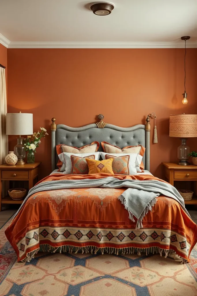 In 2025, terracotta is proving itself as more than just a trend—it’s a mainstay in warm bedroom color schemes, and I absolutely love to use them. Incorporating the deep clay tones gives a rich, sunbaked look that is energizing, while still feeling grounded. It’s wonderful for accent walls, upholstered headboards, and small clay touch pieces.