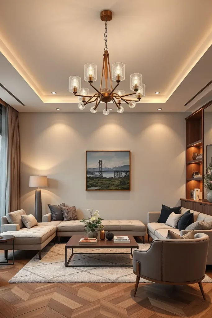 The role of lighting in the design of the apartment living rooms in 2026 will be defining. The statement fixtures are not merely functional, but they are sculptural pieces that hold the whole design together. I envision chandeliers, giant pendant lamps, and sculptural floor lamps as the main elements in living rooms.